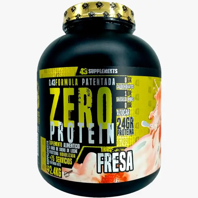 ¡Potencia tu entrenamiento y disfruta de la Proteína ZERO Hidrolizada de 43 SUPPLEMENTS en el exquisito sabor a Fresa! ¡Lleva tu nutrición al siguiente nivel con esta proteína excepcional!